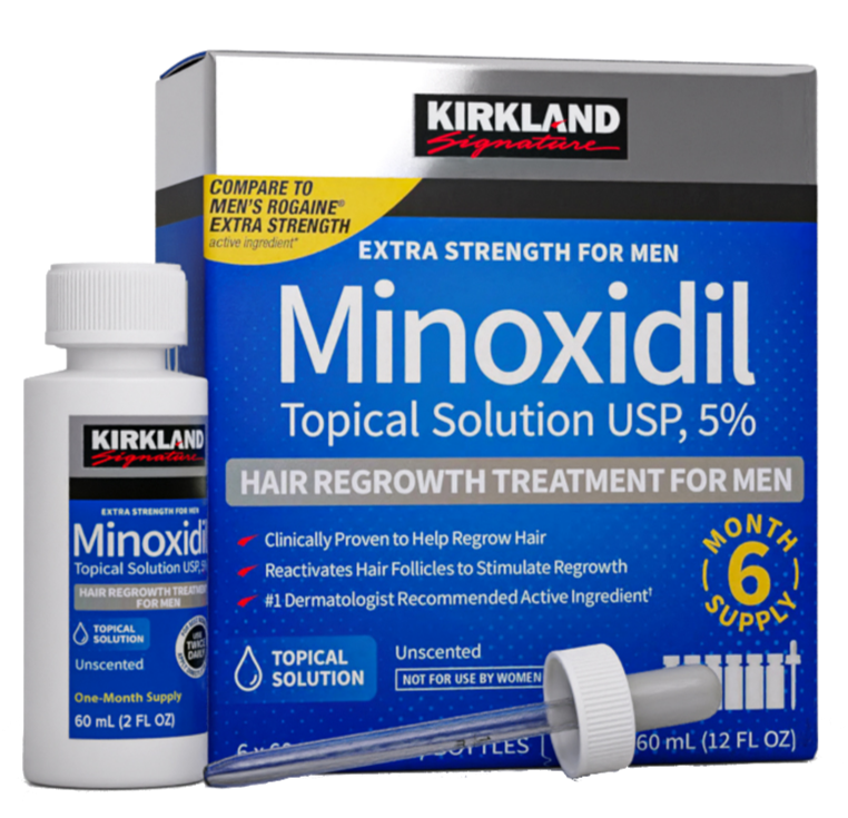 KIRKLAND Minoxidil™ 5% Extra Strength is a clinically proven topical solution that helps men with thinning hair regrow thicker, fuller hair. It works by reactivating hair follicles on the scalp to stimulate natural regrowth.